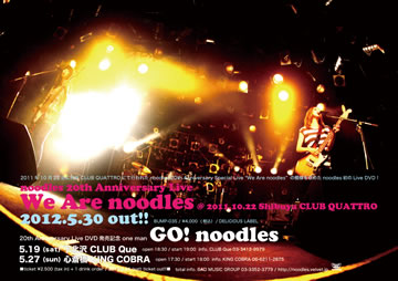 05/19【20th Anniversary Live DVD発売記念 one man “GO! noodles”】下北沢 CLUB Que(ワンマン)